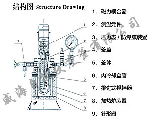 WHF系列小型高壓反應(yīng)釜的主體部件由:釜蓋(整體鍛造探傷合格后車床加工)、釜體(整體鍛造探傷合格后車床車成空心)、強(qiáng)磁力偶合攪拌器、高溫高壓針型閥、壓力儀表、下攪拌部分、內(nèi)冷卻盤管、測(cè)溫部分、液下管等系統(tǒng)構(gòu)成。所用材料選用:0Cr18Ni9 ( 304 )、 0Cr18Ni10Ti ( 321 )、 00Cr17Ni14Mo2 ( 316L )、鈦材、哈氏合金 、蒙乃爾 、鎳材、鋯材、鉭材、904L、銀材、四氟等制成,亦可內(nèi)置 鈦材 / 哈氏合金 /蒙乃爾/ 鎳材 / 鋯材 / 鉭材 / 銀材 / 四氟等內(nèi)膽、可內(nèi)噴涂耐高溫四氟層。